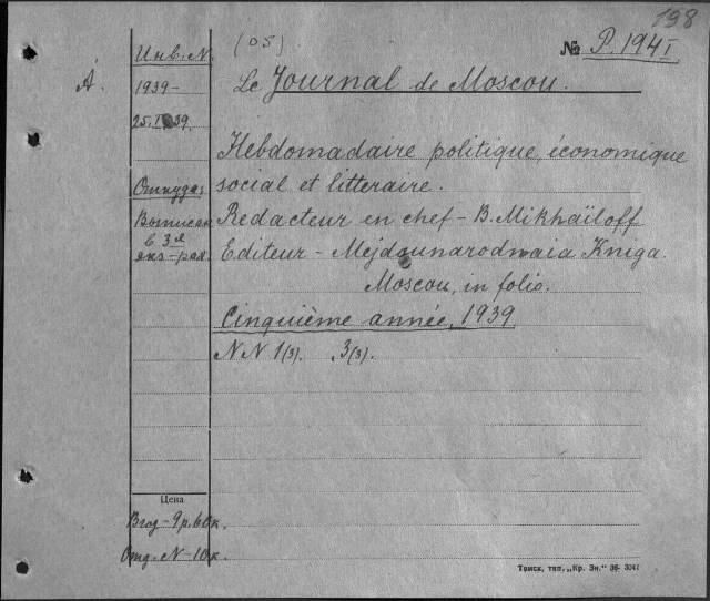 Блокнотный каталог непериодических изданий на иностранных языках