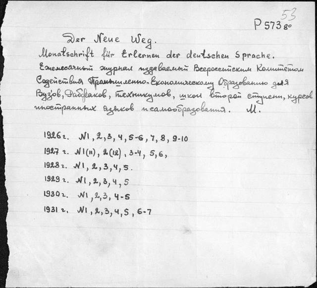Блокнотный каталог непериодических изданий на иностранных языках